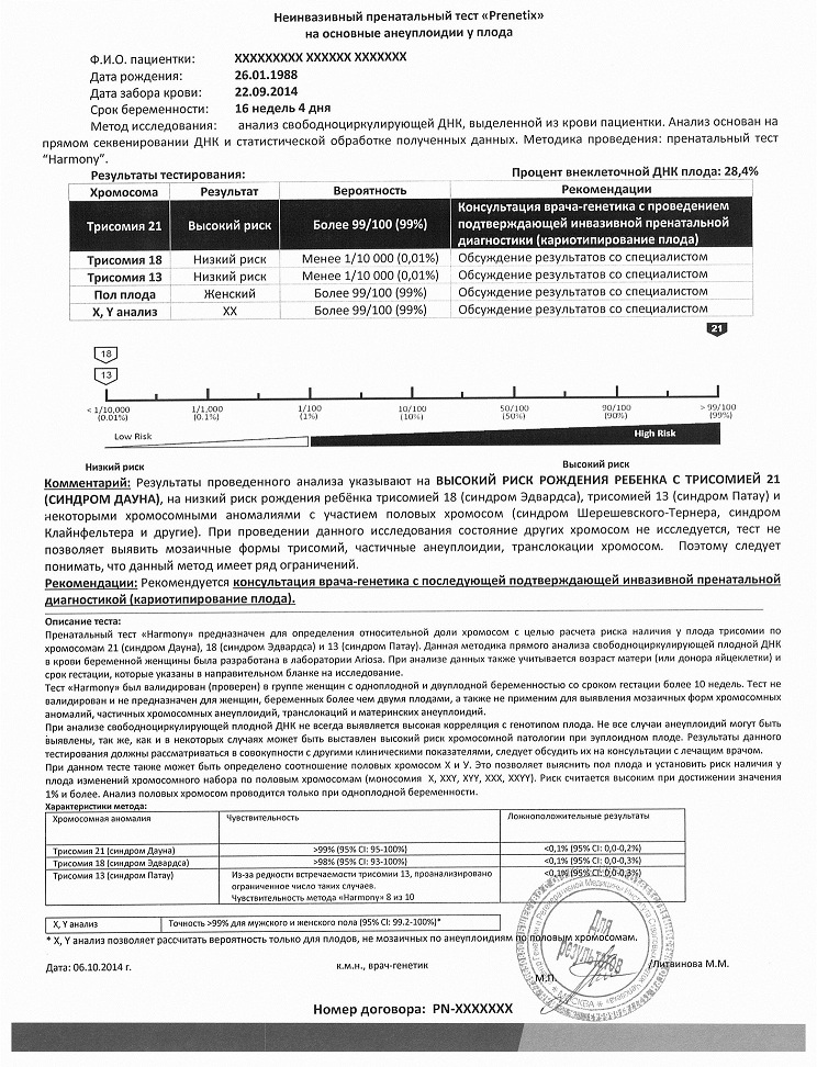 - Нет результата. Если уровень плацентарной ДНК в образце меньше 3,5%, может потребоваться повторный забор. Это связано с тем, что низкая фракция ДНК плода способна дать ложноотрицательный результат, как правило, у пациентов с высоким индексом массы тела.